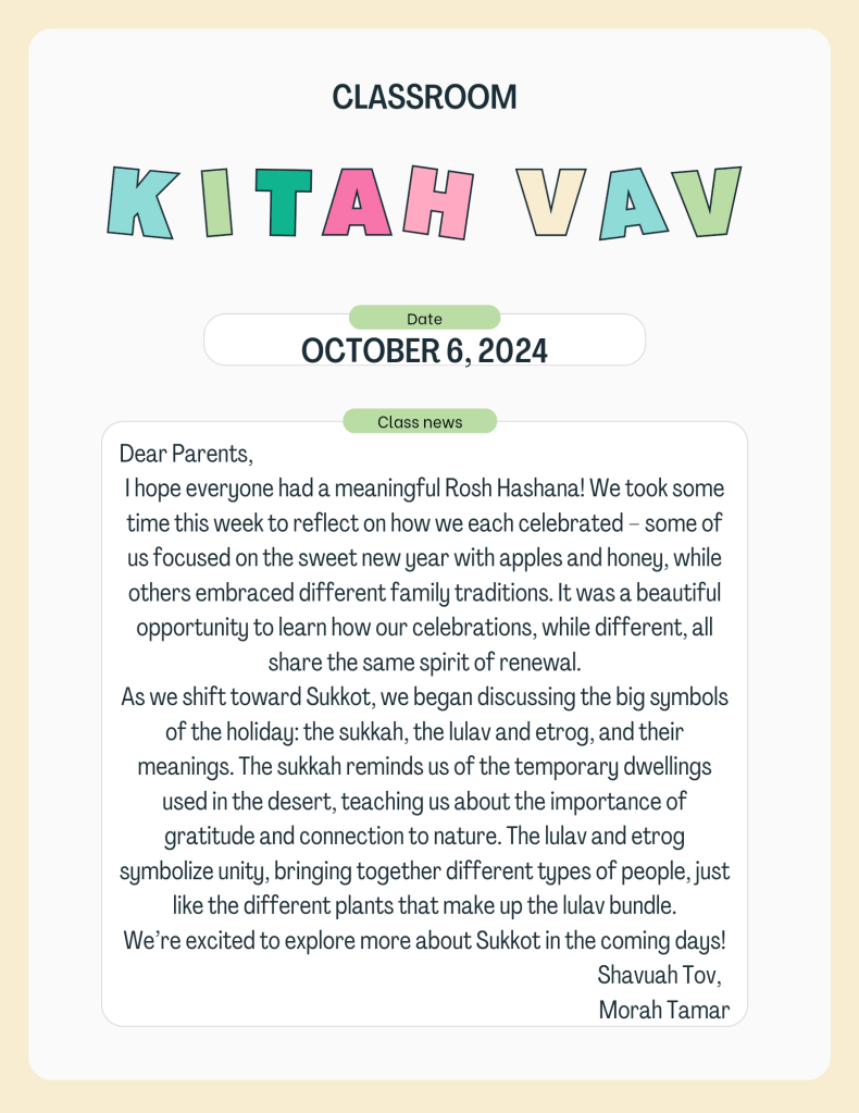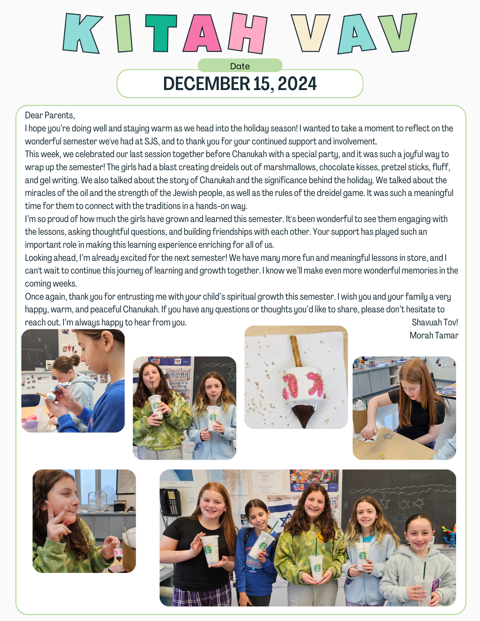 These past few weeks have been exciting ones for the Vav class. We had an opportunity to bake challah with Dr. Sender, we learned about Passover and Shavuot through videos, games, and fun readings, we experienced a chocolate seder, and then this past Wednesday we had a fun Siyum, complete with customized Starbucks drinks, to wrap up our last Wednesday together for the year.