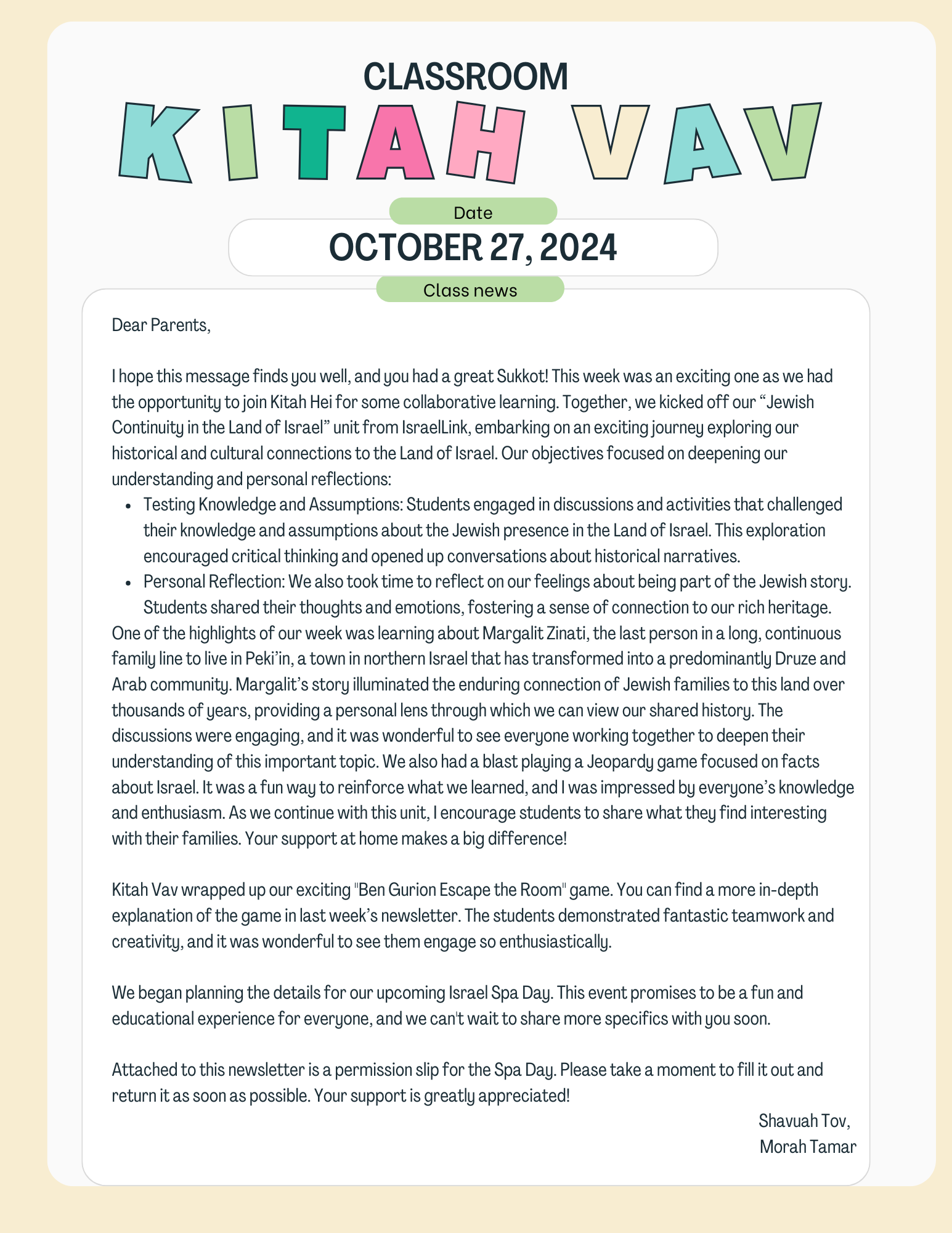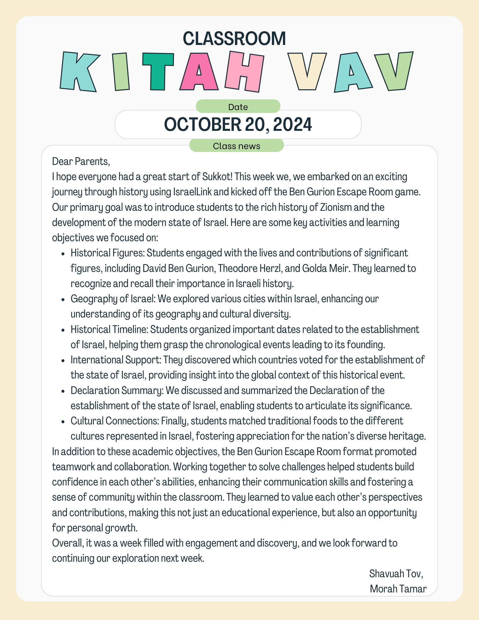 Since that time, we have been able to capitalize on that momentum with continued learning fun in the classroom. Despite the snowstorm we were able to do a digital Israel escape room, we continued conversations on what is going on in Israel and continue to sing and pray together for the release of the hostages.