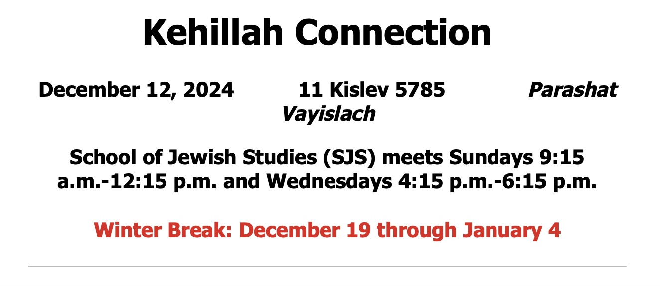 2024-2025 SJS, Families w/Children & USY Calendar (revised 12-10-2024): Click here