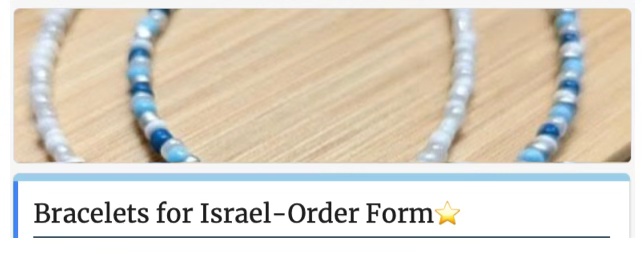Please click on this link to order a bracelet to support the people of Israel. Thank you to the Gesher Leadership for their continued phenomenal work in supporting our beloved Jewish homeland. [Link to order bracelet]