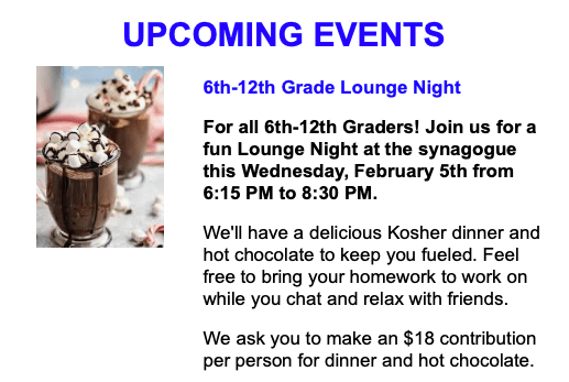 Thanks to the USY Michael Hoffman Fund, these prices are subsidized to make this event even more accessible!