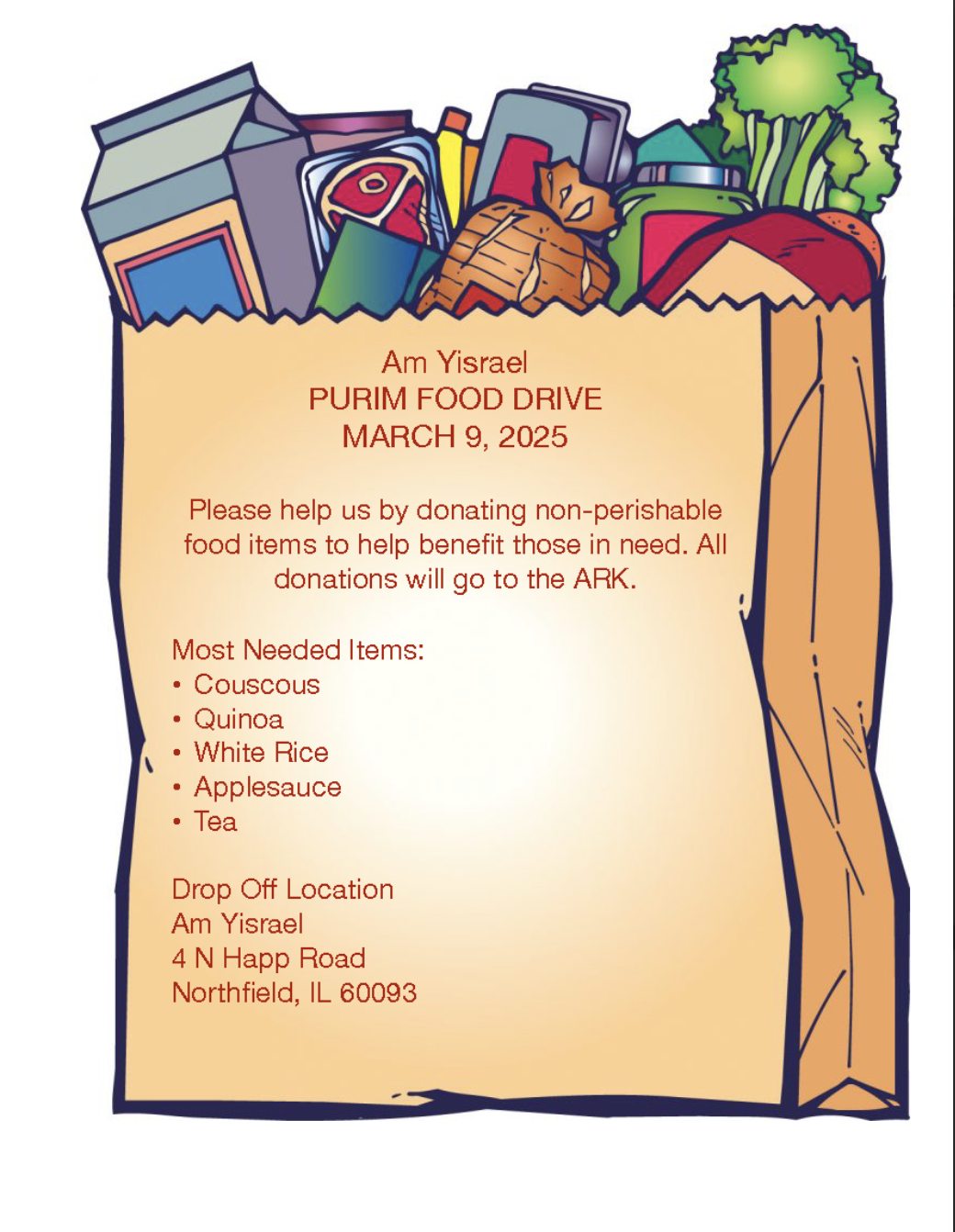Our friends at The Ark have urgently requested the following items: couscous, quinoa, white rice, applesauce, and tea (with a hechsher). Please bring at least one of these items when you attend the carnival to support their important work.