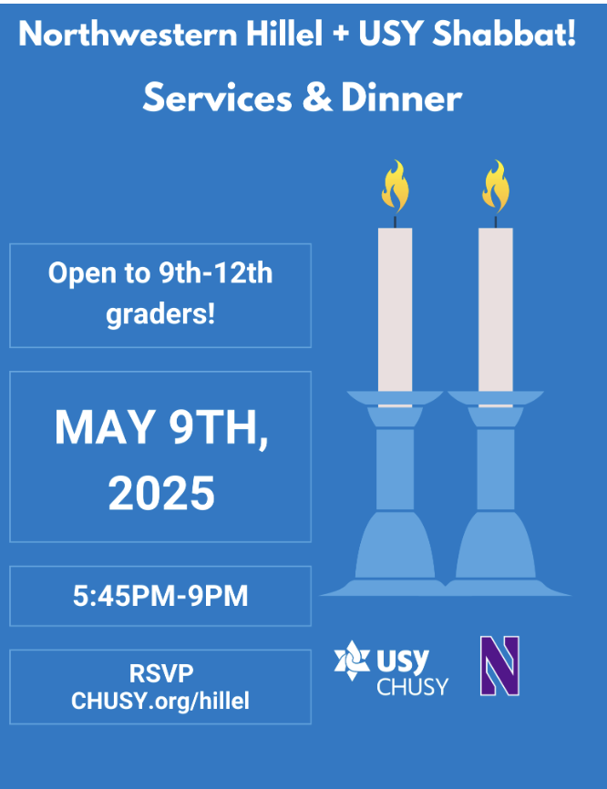 Services will start at 6pm with the Hillel Conservative Minyan and dinner will be at 7pm. Teens can sign up to lead different portions. Our own Shayna Kamm will be delivering a D’var Torah.