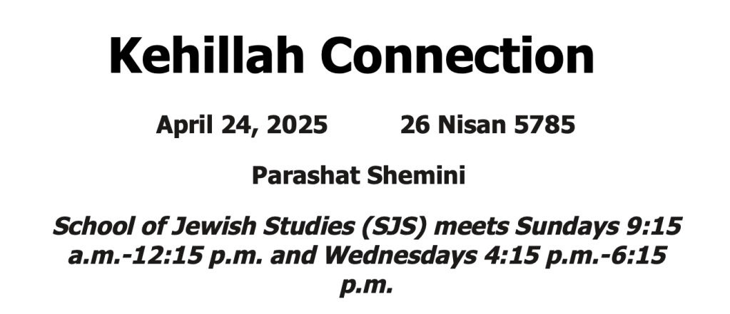 2024-2025 SJS, Families w/Children & USY Calendar (revised 4-10-25): Click here