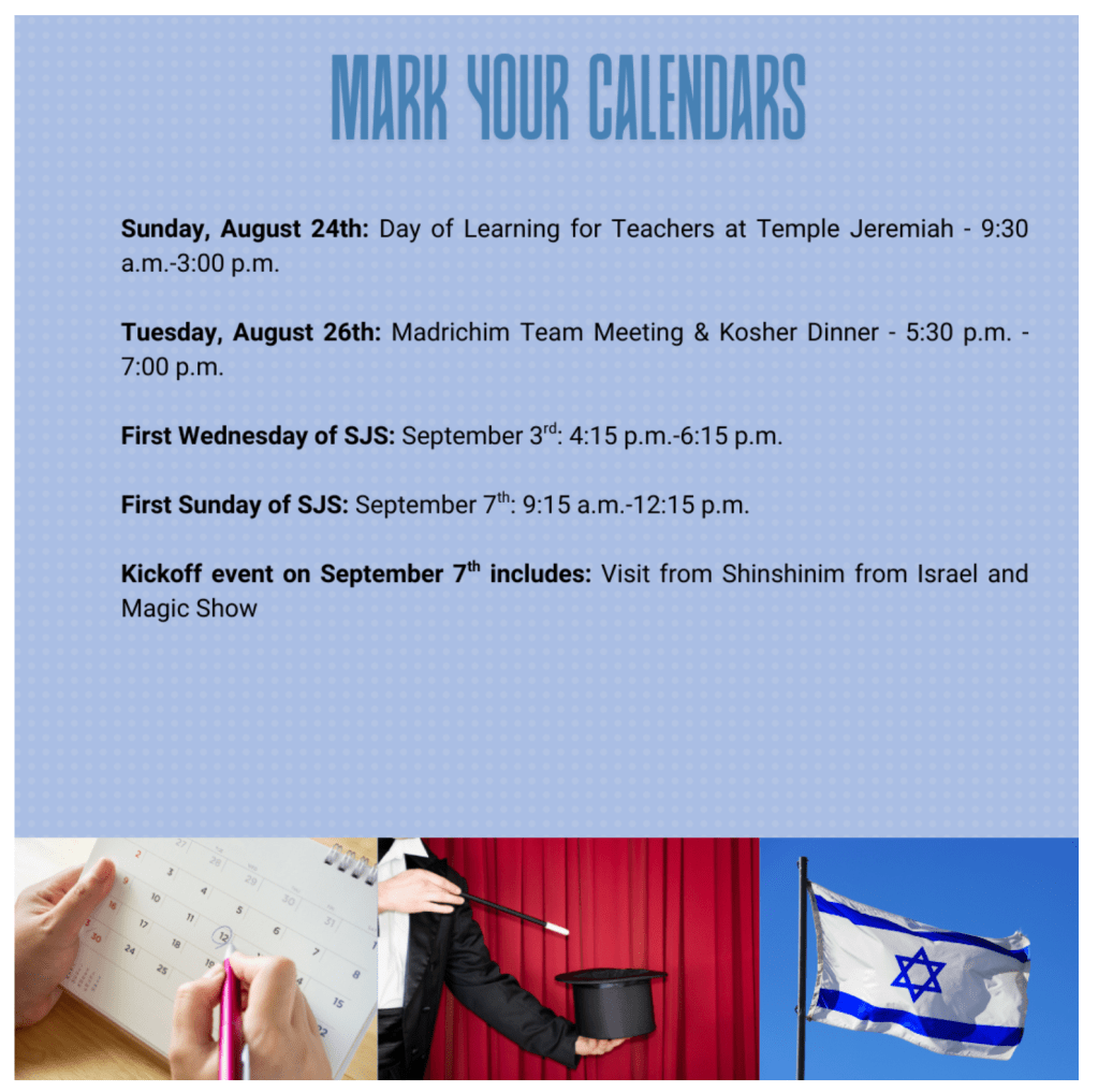 SJS, Families w/Children & USY Calendar through May 30, 2026 (revised 8-8-25):