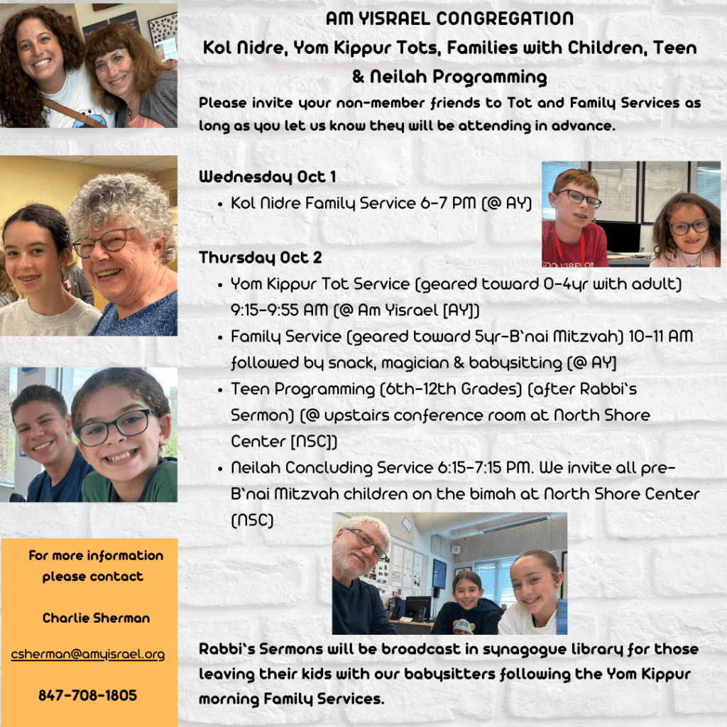 Please RSVP for Family and/or Tot Kol Nidre & Yom Kippur Services so we can plan accordingly.