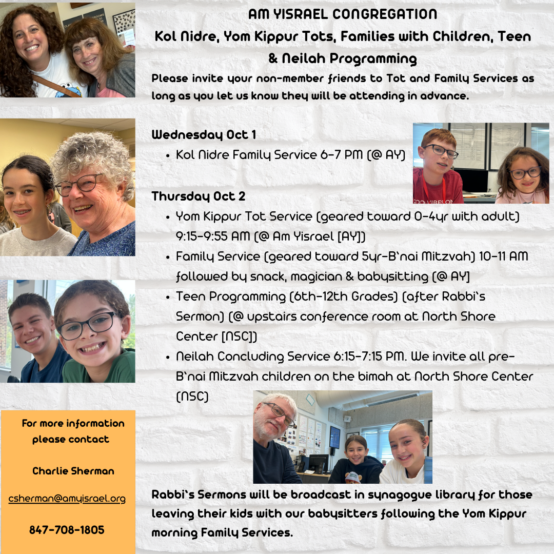 Please RSVP for Family and/or Tot Kol Nidre & Yom Kippur Services so we can plan accordingly.