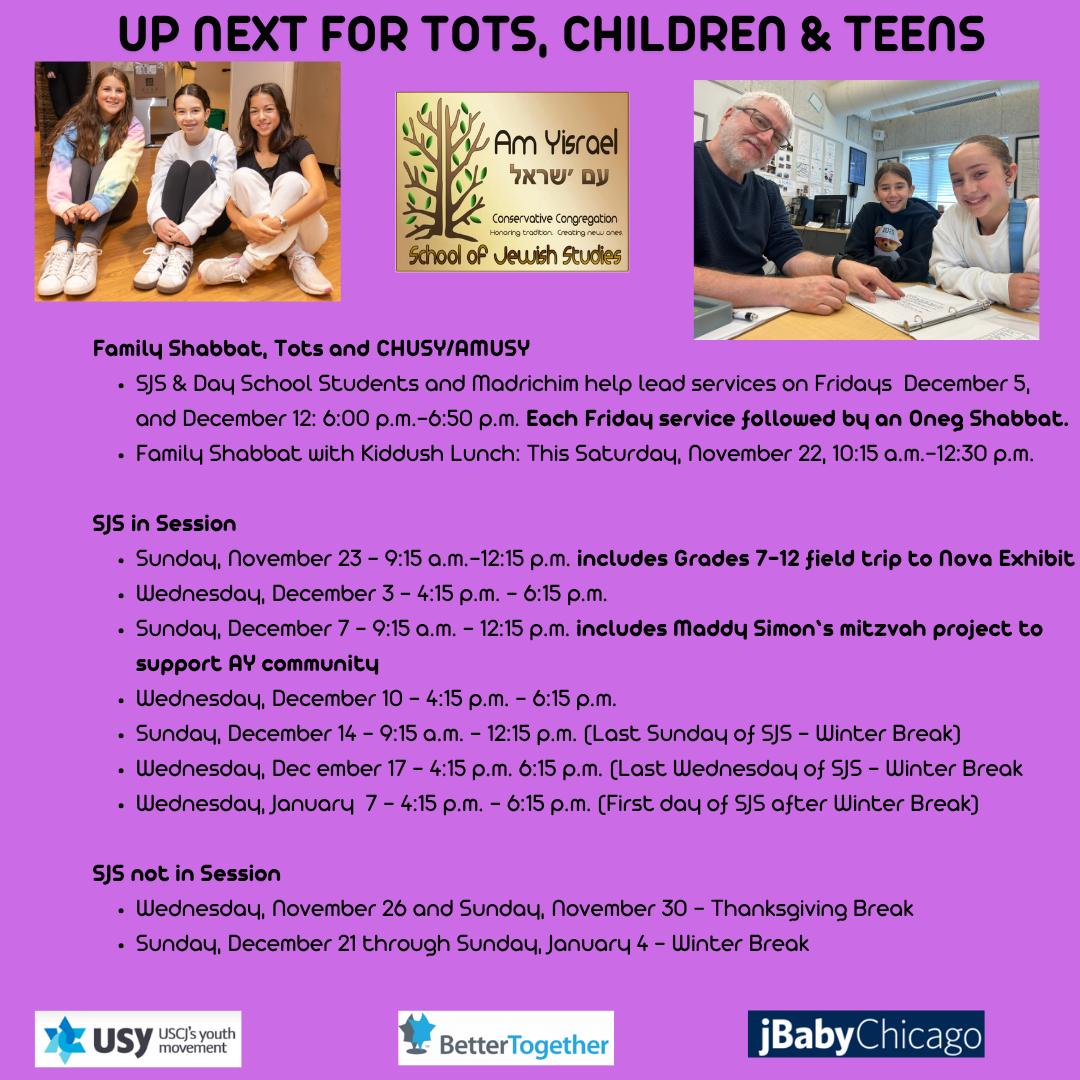 SJS, Families w/Children & USY Calendar 2025-2026 (revised 11-16-25):