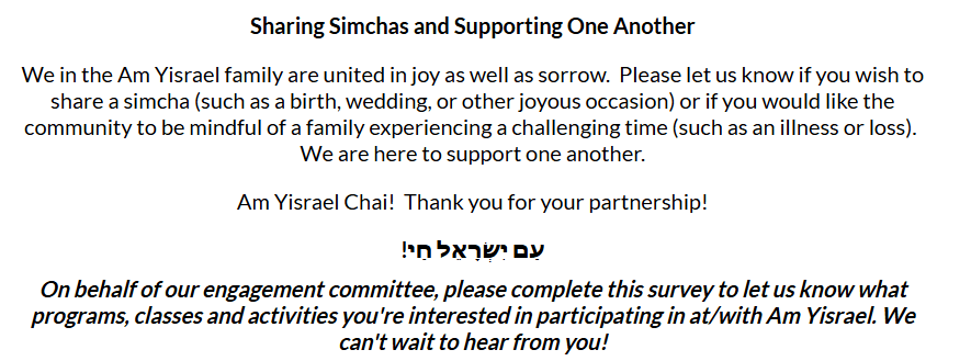If you have any questions please contact Mr. Sherman 847-708-1805 or csherman@amyisrael.org.