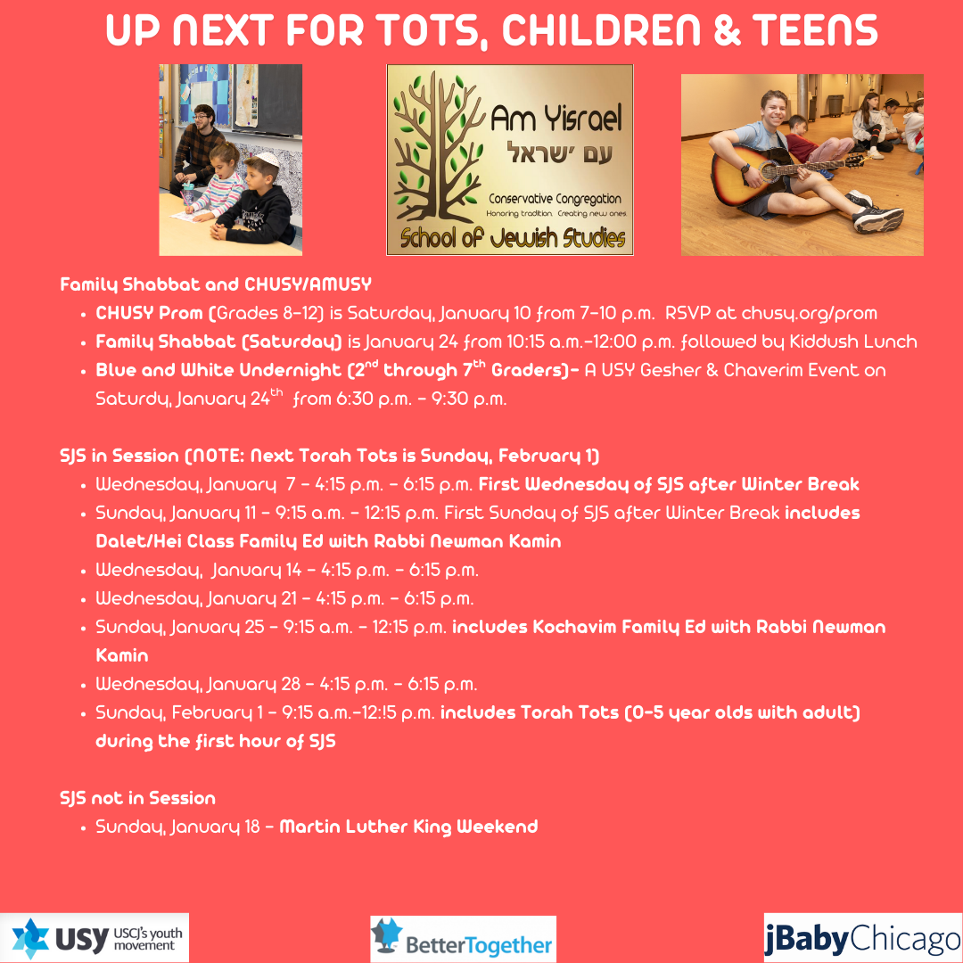 Am Yisrael Family Programming, SJS & USY Calendar 2025-2026 (revised 12-31-25):